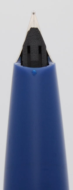Product Name Triumph Imperial Model 2557 with earlier 1970s short diamond nib. This pen would have originally had a blue colored long diamond inlay gold plated steel nib (the first series of Triumph Imperials all had black nibs, whereas the second series had nib units whose color matched the rest of the pen, and this is from the second series). We have replaced it with a short diamond inlaid nib from the 1970s "Triumph White Dot" series, and the blue color is an exact match.