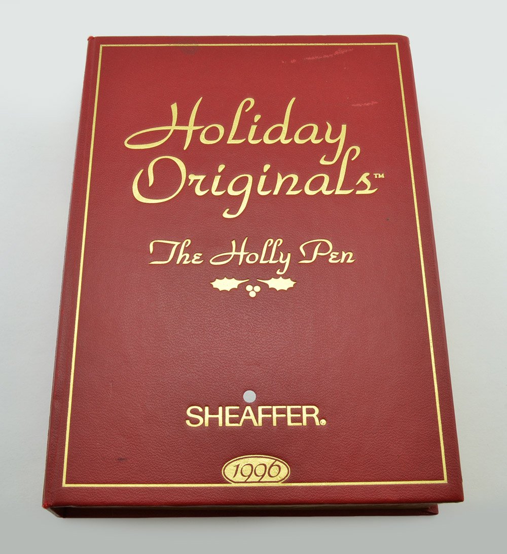 Condition Near mint condition. The pens may not have ever been used. The barrels have small amounts of handwear. The caps and trim look perfect. They are shiny and free from scratches and wear. They ship in the original Holiday Originals The Holly Pen box. The box looks like an older book ready to be placed on the shelf. There are scratches on the box that add to the feeling of book wear.