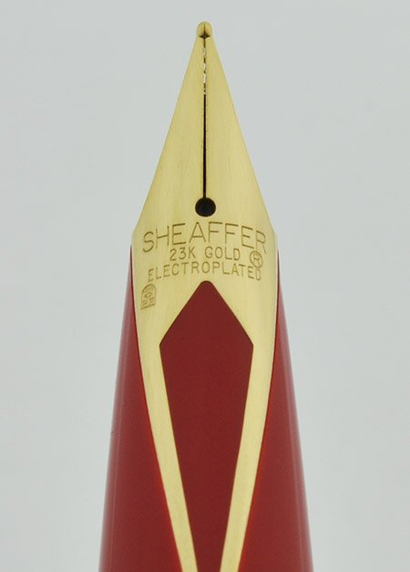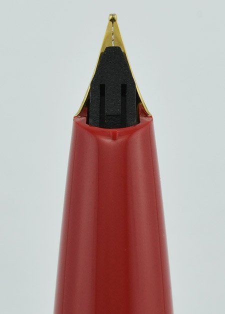 Nib The nib is a long diamond style inlaid nib, 23K Medium Nib. The section clearly says, "M," even though it shows some wear.