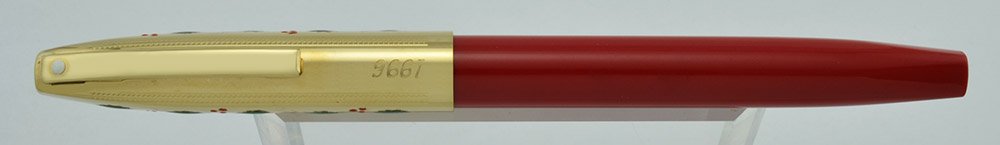 Color The caps and trim are 23K electroplated gold. The caps have been decorated with enamel holly berries and leaves. The barrels are berry red. The caps are engraved with "1996."