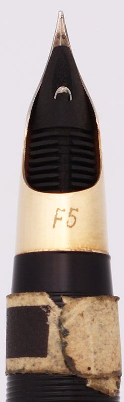 Nib FINE two-tone Triumph 14k nib. It's labeled in 2 places - a sticker on the section, as well as with "F5" on the back of the nib.