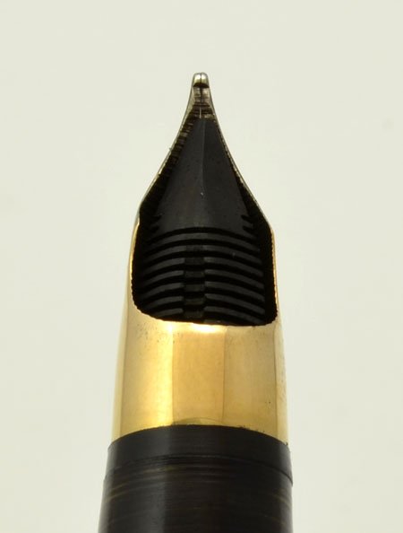 Nib | Large 2-tone conical 14k Triumph nib is firm, and is a medium . Very good condition and SUPER smooth. |