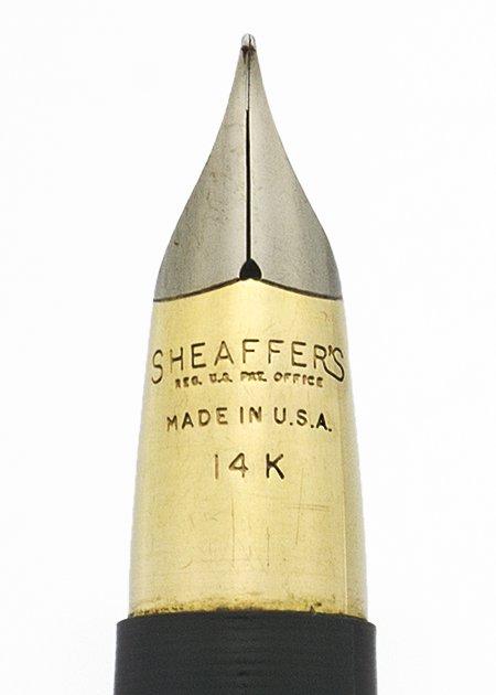 Manufacturer and Year Sheaffer, made in USA -- 1950, the model officially was produced in 1949-50, but the non-serial numbered nibs are from 1950 on.