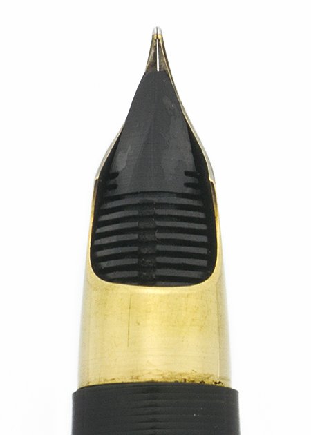 Nib FINE Sheaffer's 14k gold Triumph style two-tone nib without a serial number. The silver colored masking is platinum. It's smooth and firm with nice tipping material. The nib has a nice waverly upturn.