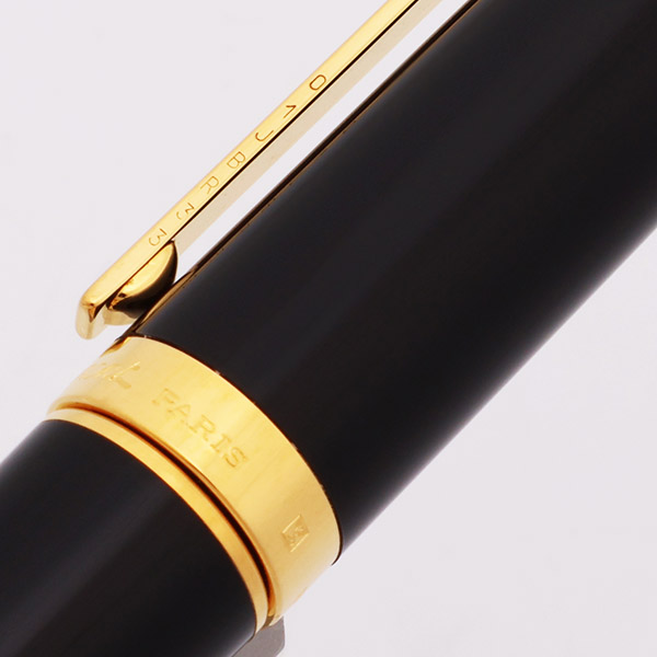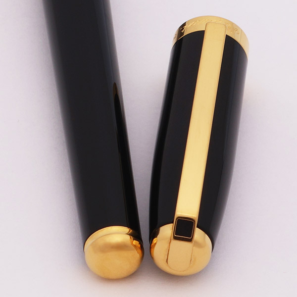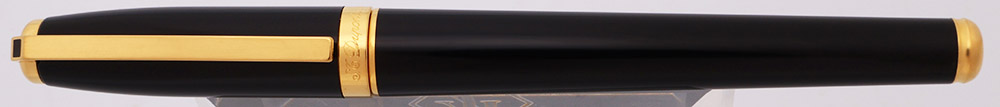 Color Black lacquer cap and body with gold plated trim and black section. The clip has the serial number 01JBR33 stamped on the side.