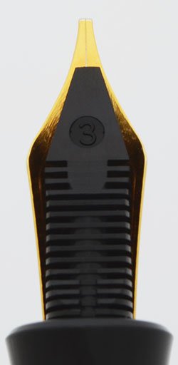 Product Name Gladiator, it has a gold plated steel nib. (This is not the Gladiator Deluxe which has a titanium nib.)