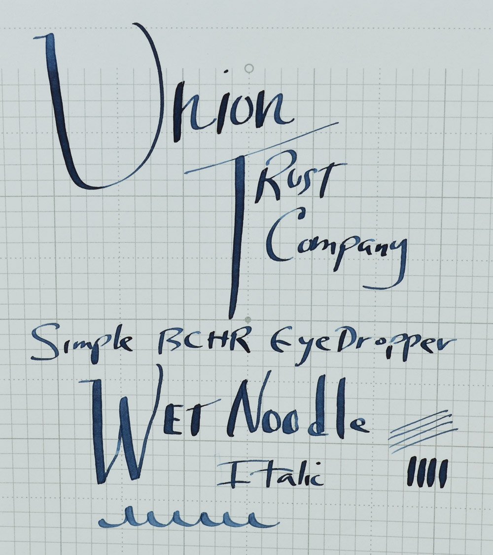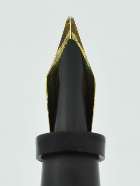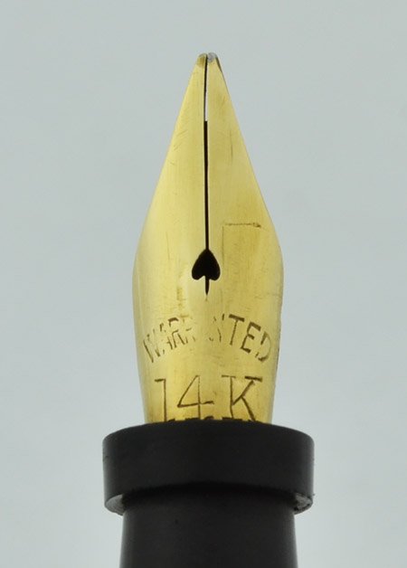 Nib FULLY FLEXIBLE MEDIUM- FINE Warranted nib. It's got a bit of an italic cut to it, and it is close to what we would call a wet noodle. See writing sample below. Very smooth and wet.