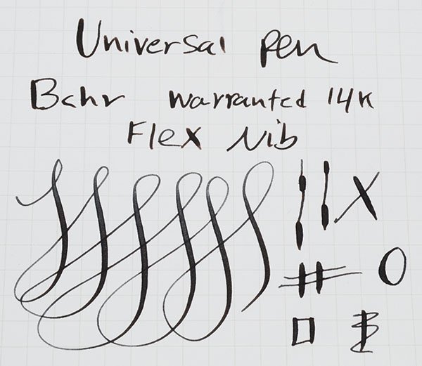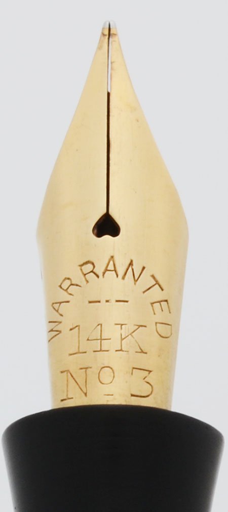 Nib FINE FLEXIBLE Warranted #3 nib. The tines are very soft and spread easily. See the writing sample below.