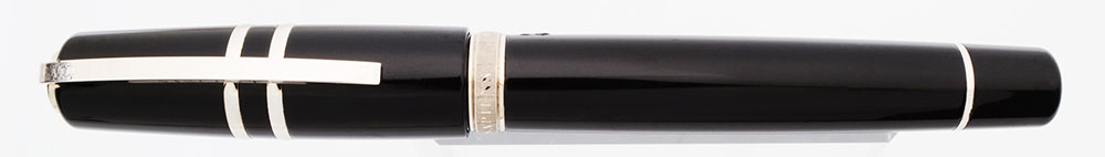Condition Near mint condition with no cracks, chips, dents, or dings. This is an over-sized, velvety black, shiny pen that looks beautiful and elegant. The cap and barrel look fantastic with just some micro-scratching. The trim is bright and shiny. The imprints are clear.