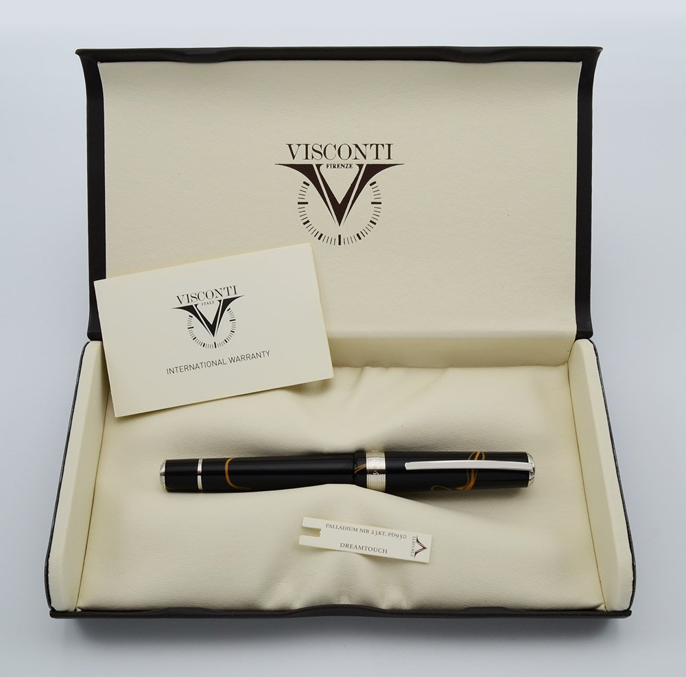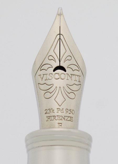 Nib FINE 23k solid palladium nib. Palladium nibs are thought to be softer writers than gold, hence why Visconti refers to it as a "Dreamtouch" nib.