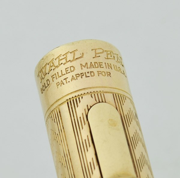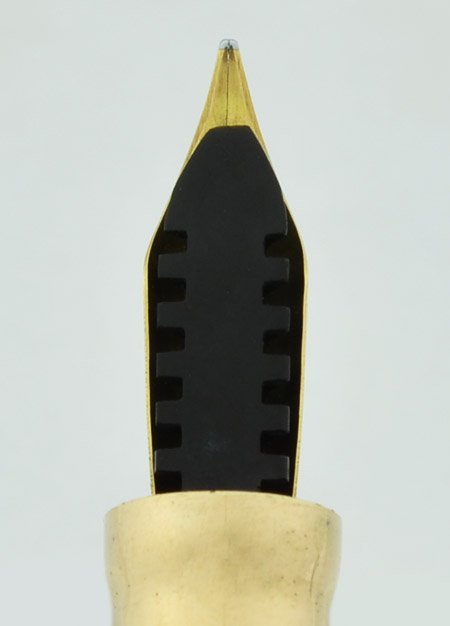 Nib FLEXIBLE EXTRA FINE 14k nib is marked Wahl #2. It's in excellent condition with uniform tipping. It's not full flex, but it has easy line variation from fine to a broad, and with a little pressure you can get close to double broad. Very respnsive with good spring-back. See writing sample below.