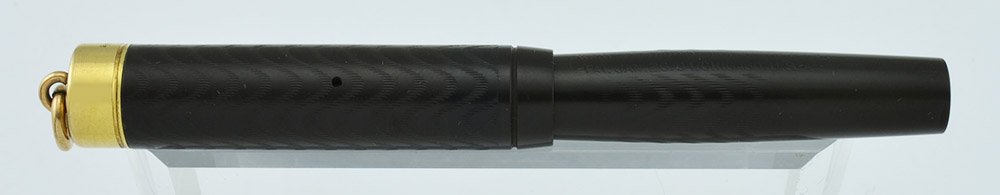 Condition Excellent condition. No real scratching and little wear on the pen. There's just some microscratching on the trim and a tiny bit of wear on the ring top. The hard rubber is a bit discolored to a lighter color except for where the cap covers, and one band on the lower cap where there was probably an original sticker protecting it from the sun for a long time. No cracks or chips. The imprints are clear and readable.