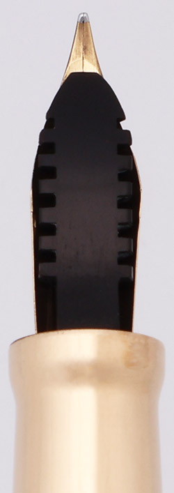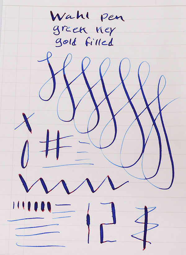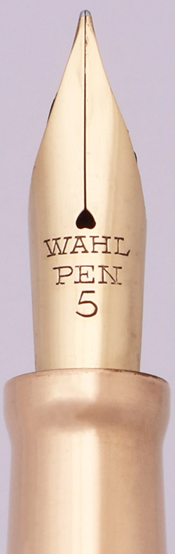 Nib MEDIUM FLEXIBLE 14k Wahl #5 nib. It is a large nib and offers good line variation. Please see the writing sample below.