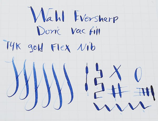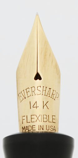Nib FLEXIBLE FINE 14k Eversharp nib. It is labeled, "Flexible," on the nib itself and offers good line variation. We consider this fully flexible, but not a wet noodle. The tines spread with a little resistance but move well. Please see the writing sample below.