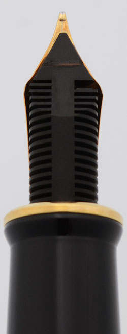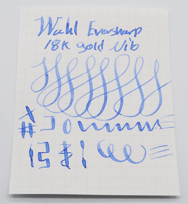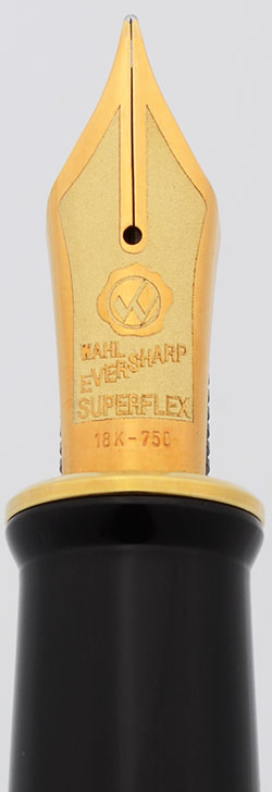 Nib MEDIUM FLEXIBLE Wahl-Eversharp "Superflex" 18k nib. It is smooth with large tipping material and nice spring for good line variation. It is very good flex for a modern nib. See the writing sample below. The "Superflex" nib was meant to put down wider lines than their "Goldflex" nib.