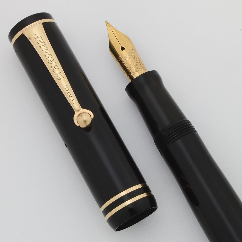 Condition Excellent condition. Microscratching on cap and barrel. Small scratches and slight posting marks on the end of the barrel. Clip has some plating loss on the top corners, and one scratch above the P in Eversharp. Cap bands are excellent, no brassing. Slight brassing on the lever. No dents or dings, and no cracks or chips. It's working very well.
