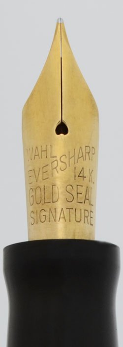 Nib FINE 14k Gold Seal Signature 14k nib. This lovely nib will go from a thin fine line to broad without much pressure. See writing sample below.