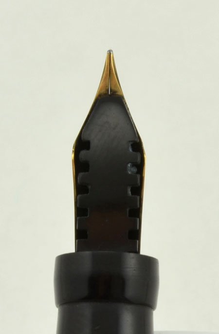 Nib | Marked Wahl Tempoint 2 14k. Nice fine point, with good tipping material visible. Very flexible, just short of a wet noodle. Really fun to write with. |