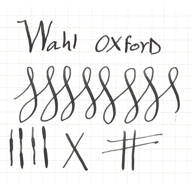 Nib FLEXIBLE MEDIUM Wahl Oxford 2 nib is smooth with lovely tipping material. It's got more flex than what we would call semi-flex, but is not fully flexible. It gives easy line variation from medium to nice broad under just light pressure. See writing sample below.