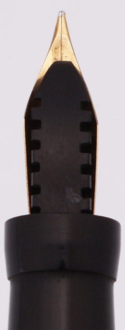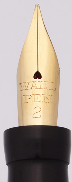 Nib FINE Wahl #2 nib. This nib is only semi-flex, and requires a bit of pressure to get line variation. See writing sample below.