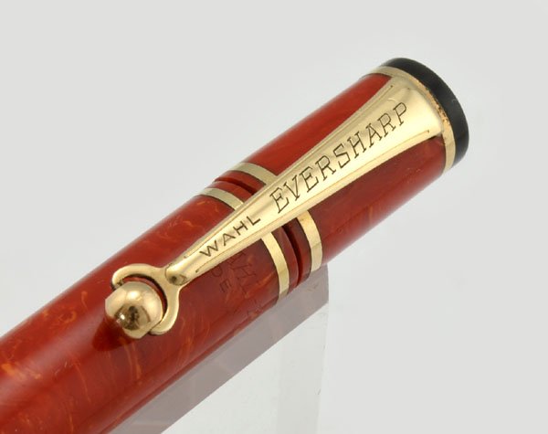Color It's a red-orange color with whisps of a sort of lighter color in it. Gold plated trim, with a chrome or nickel plated cone.