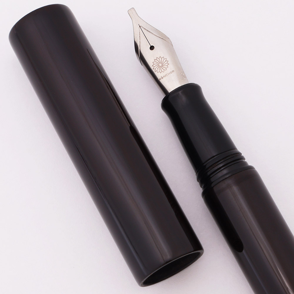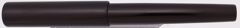 Color Black-brown woodgrain. The cap and barrel are made of ebony wood, with clear coats of urushi lacquer. The wood is deep brown, and in and the pen looks almost black, but in strong light or with a magnifier, you can see the woodgrain. The surface has been coated in layers of urushi lacquer in the Nurippanashi technique, which does not require the polishing step of other techniques. As a result, this pen features the Japanese "wabi-sabi" aesthetic, which encourages the acceptance of imperfections. Under magnification, we do see some tiny surface bumps or irregularities, like specks of dust trapped under a subsequent urushi layer.