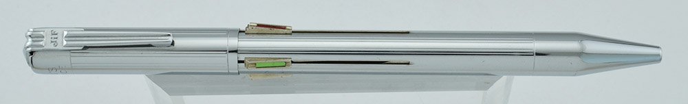 Condition Excellent + condition. No cracks or chips, dings or dents, personalization, or plating wear. There are some small microscratches along the barrel, but no real wear. The mechanism seems to be working very well, though the installed refills are out of ink.