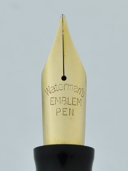 Nib FULL FLEX FINE Waterman's Emblem Pen nib. It's very large, and flexes easily from fine to double broad. See our writing sample below. This is an impressive nib in remarkable condition.