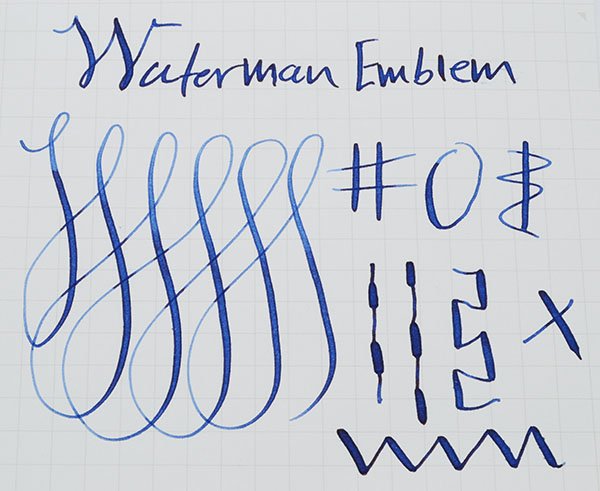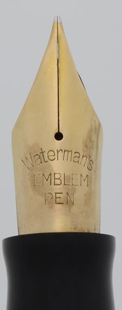 Nib FLEXIBLE MEDIUM Waterman's Emblem Pen nib. It's very large, and flexes easily from medium to double broad. See writing sample below. This is an impressive nib.