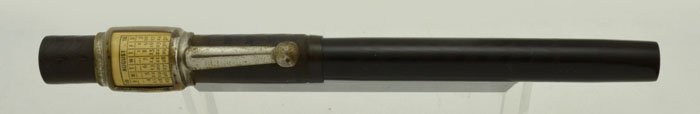 | Color | Black chased hard rubber with no trim. This model has an aftermarket accomodation clip, as the slip cap was intended to lack a clip. |