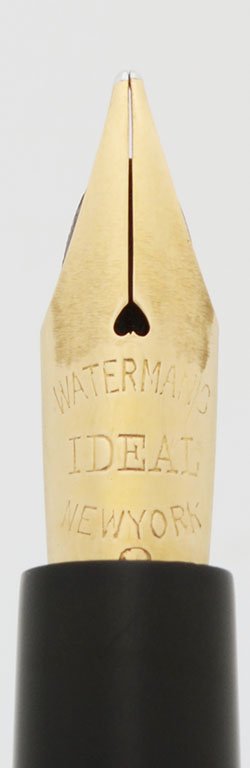 Nib FLEXIBLE FINE gold nib is marked "Waterman's Ideal new York." Please see the writing sample below. The point is fine which offers very strong contrast to the flexed lines of the pen. Line variation from fine to a wide broad. We consider this fully flexible, though not a "wet noodle."