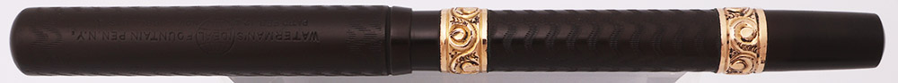 Color Black chased hard rubber (BCHR) with two 1/4" gold filled ornamental bands on the barrel.