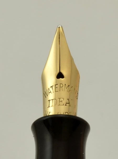 | Nib | Flexible Waterman Ideal New York #2 (we think, it's hard to see the number) nib. Very smooth, very nice condition with excellent tipping material. You'll get a line variation between medium and double broad. |