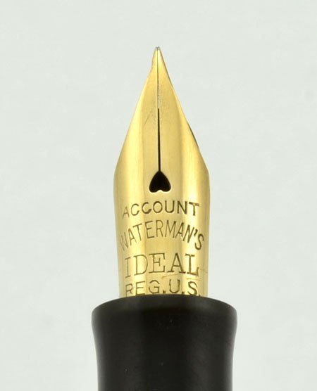 Nib | "Account" Ideal nib is extra fine and firm. Excellent condition with very good tipping material. Very smooth. There's a bit of a shallow gouge on the left side of the nib, no where near the tip, but probably caused during the original grind. |