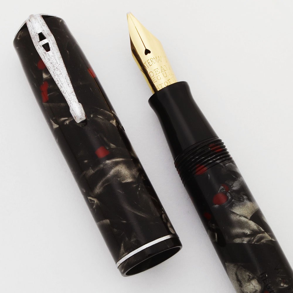 Condition Excellent condition. The material is shiny with a very clear barrel imprint. There is a fair amount of pitting on the clip. The cap band has a tiny bit of brassing, but the lever and lever box look really nice. No cracks, chips, bite marks, or personalization. The filling system is working well.