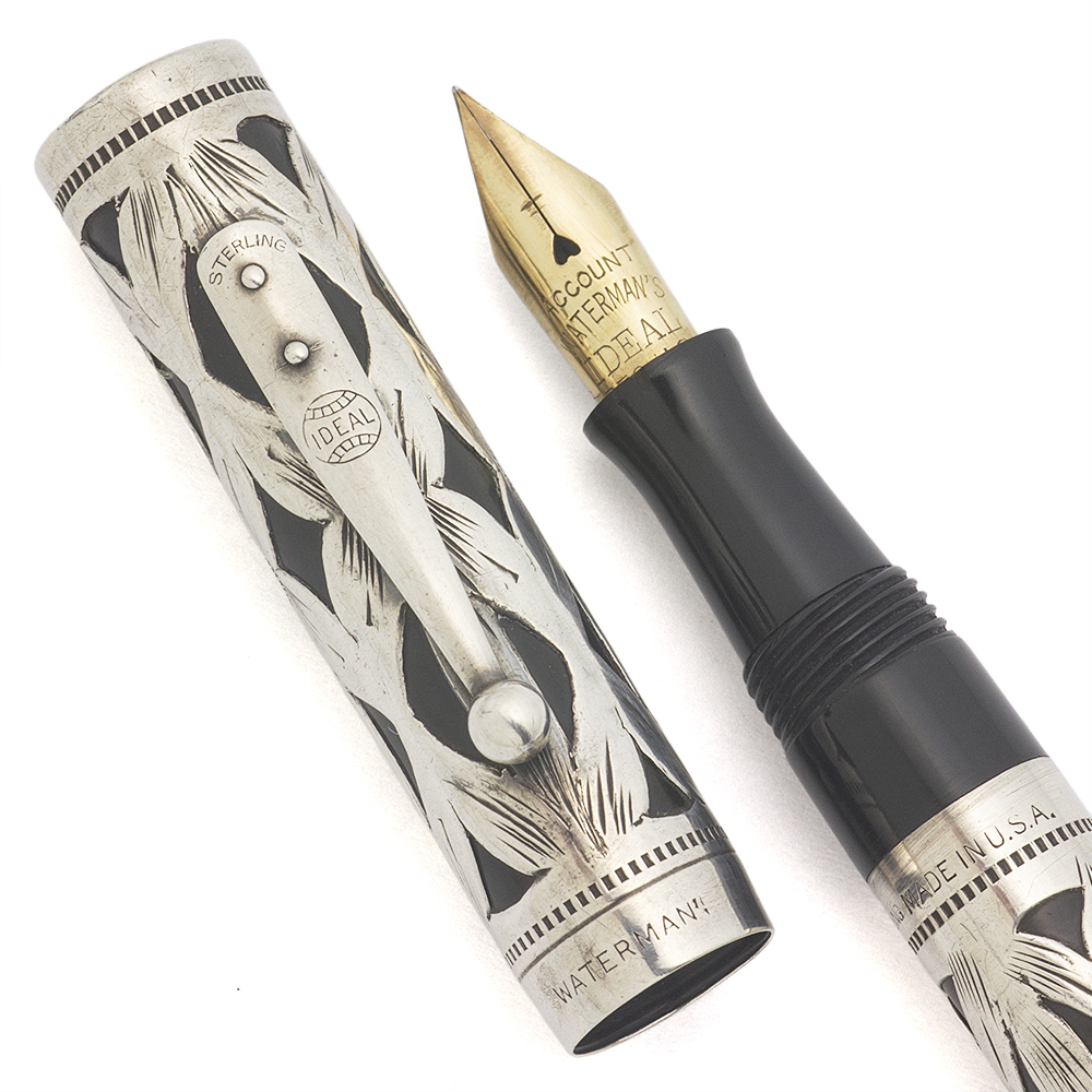Condition Excellent condition, quite beautiful. No cracks or chips, but there are small marks and dings in the filigree, especially around and on the ends (see photos). There are a few scratches on the section. The clip is excellent, and very firmly attached. The imprints in the sterling are good and readable. It's a gorgeous piece, despite its wear, and it is working very well.