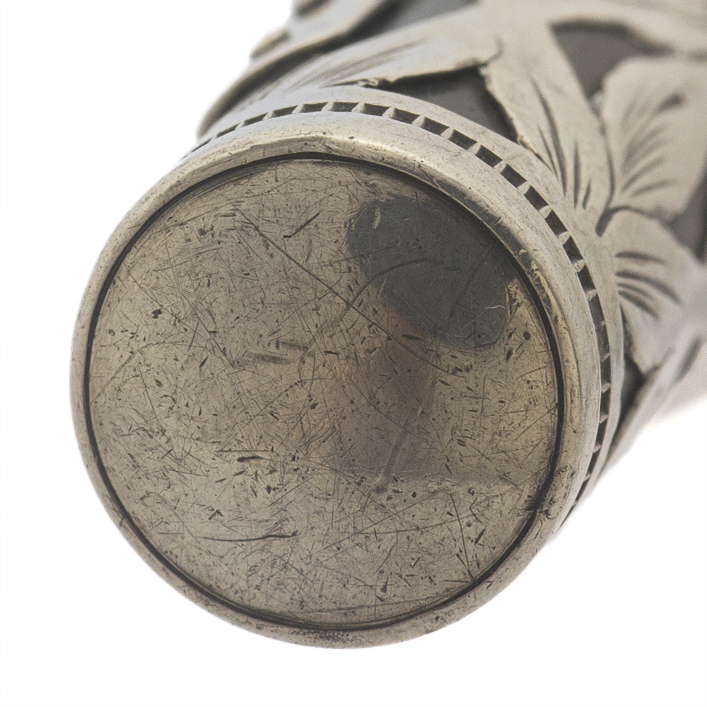 Color The barrel and cap are covered with a cut out sterling filigree design which has been etched.