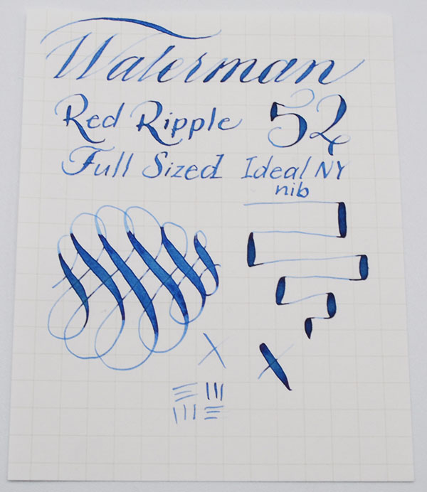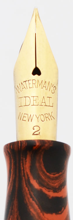 Nib Fine Waterman's Ideal New York #2 gold nib. The #2 nib writes smoothly with strong line variation from extra fine to broad. Please see the writing sample below. The nib has a red ripple hard rubber feed which is correct.