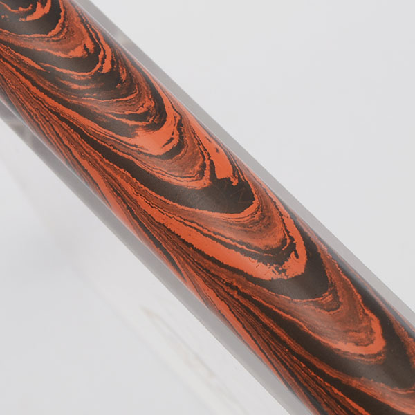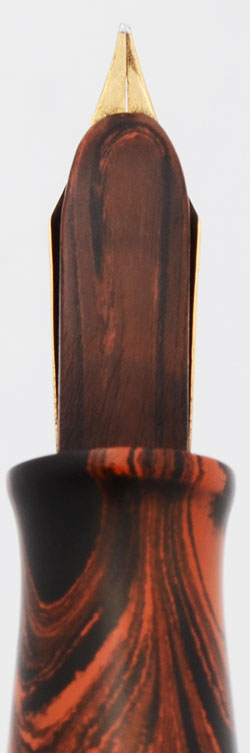 Color Red ripple hard rubber with gold filled trim. The trim includes a cap band measuring 1/8".