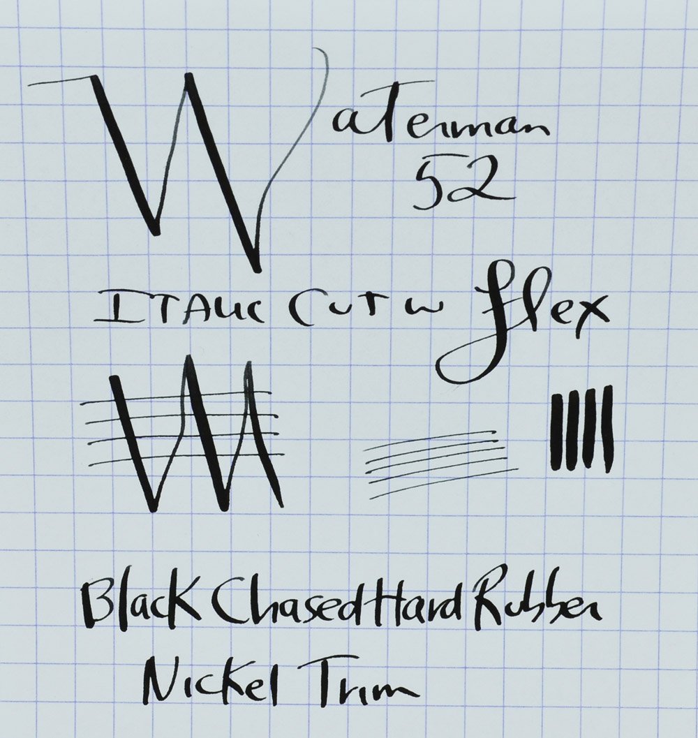 Nib FLEXIBLE MEDIUM ITALIC. It's a Waterman's Ideal #2 nib. The tipping is good and it is a smooth writier. It's close to what we would call full flex, but not quite there. See writing sample below.