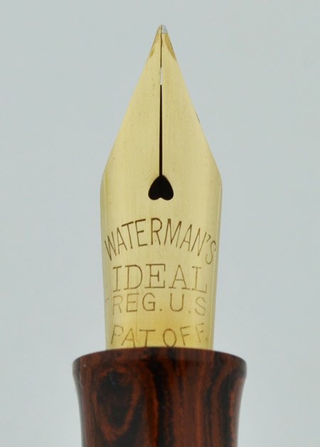 Nib FLEXIBLE FINE Waterman's Ideal gold nib is smooth with lovely tipping material. It's close to what we would call fully flexible, with easy line variation from fine to a broad + under just light pressure, and a bit more under a weightier touch. See our writing sample below.
