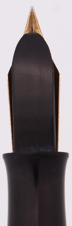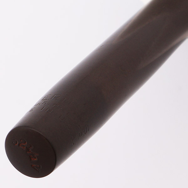 Condition Excellent condition with no cracks, chips, dents, or dings. This is a small, smooth, shiny ring-top fountain pen that looks excellent. The cap and barrel have mellowed to a dark brown color that is uniform. The surface is smooth with only light scratching. The lever looks quite nice though it does have some pitting along the top edges. The cap band has light microscratching. The ring top looks good with just some dark tarnishing on the post ring. The imprints are faint but readable.