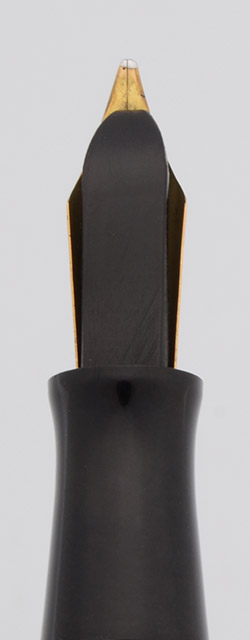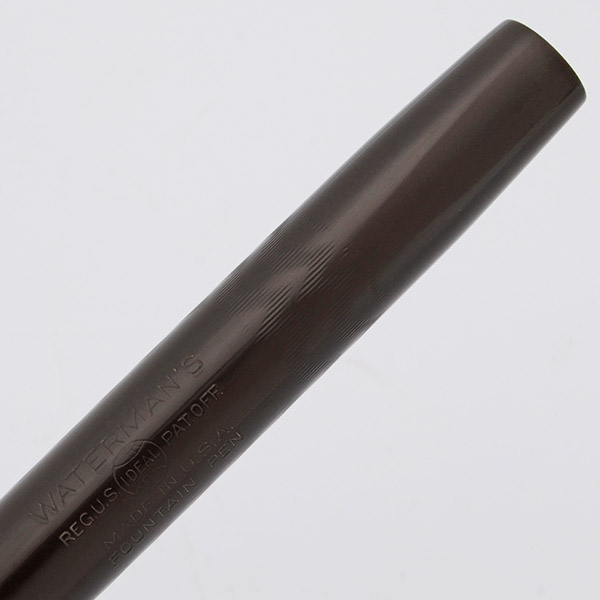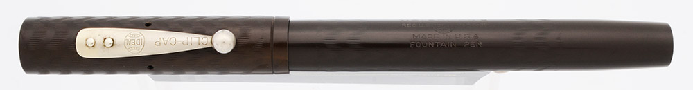 Condition Excellent condition. The chasing on the cap is very well defined, though it's mostly smoothed down on the barrel. The color is faded to a dark brown on most of the pen, except for the section and the part of the barrel that sits underneath the cap. The imprint is strong and clear. The lever box looks quite nice, and the clip looks really good. The top of the clip is starting to look brassed, but for the most part, the finish on the metal trim is just a bit dulled. The pen has no dents, cracks, chips, or major marks or scratches. It's working very well.