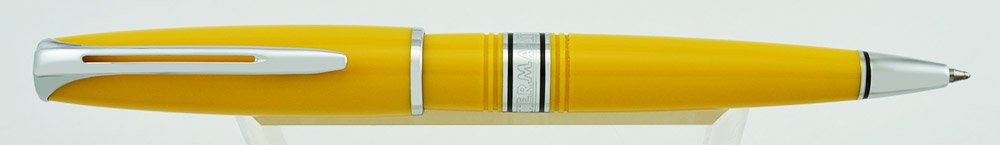 Color Yellow pen with chrome trim. The design is classic retro with art deco styling.
