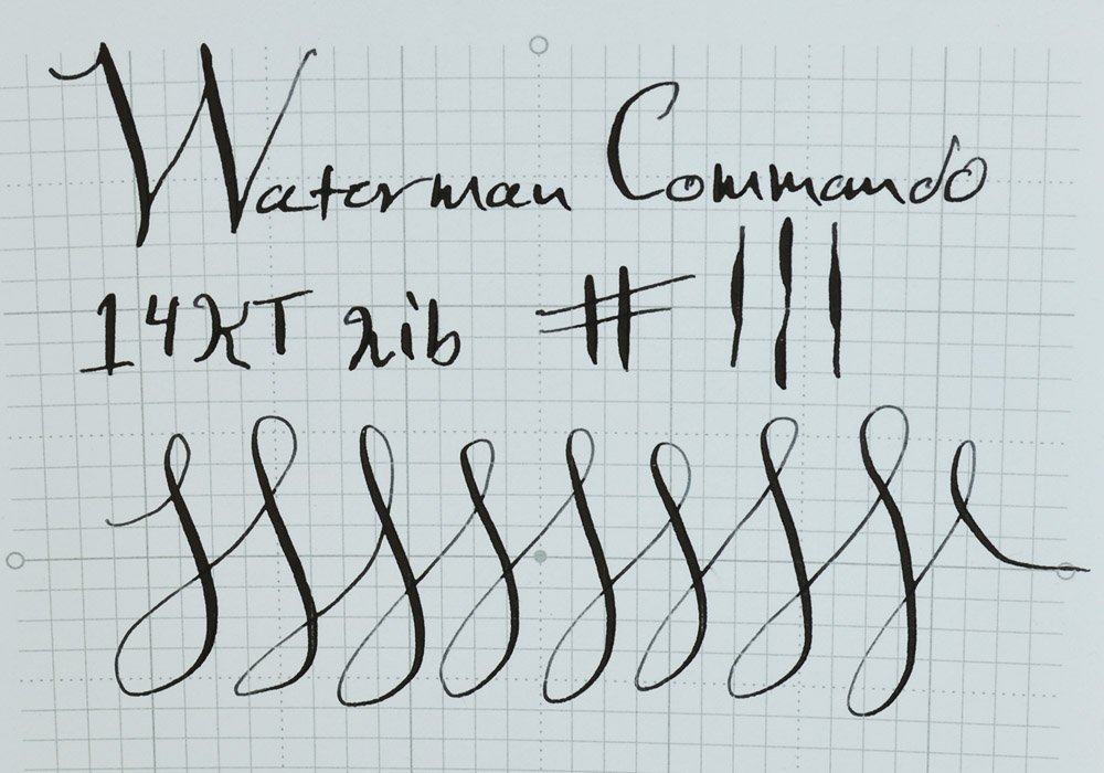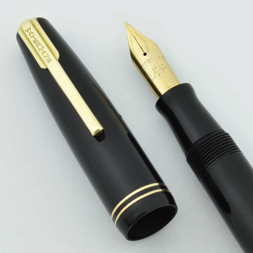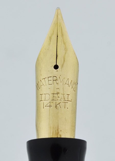 Nib FLEXIBLE FINE Waterman's Ideal 14k nib is quite large. It's smooth with nice tipping material. It's flexible, with line variation from fine to a nice larger broad with a little pressure. Not full flex, but great for every day writing. See our writing sample below. It's got a few light scratches on the surface, but obviously nothing that affects the writing.