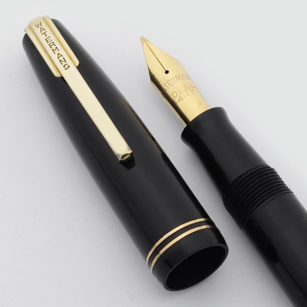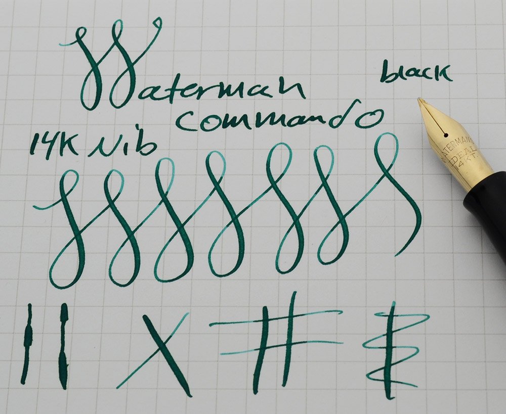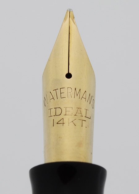 Nib SEMI-FLEXIBLE MEDIUM Waterman's Ideal 14k nib is quite large. It's smooth with nice tipping material. It's flexible, with line variation from a narrow medium to a broad. While the line variation comes from flex, the writing looks more like a stub nib was used. Please see the writing sample below.