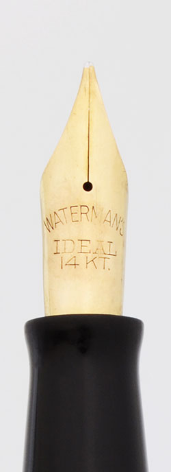 Nib FLEXIBLE MEDIUM Waterman's Ideal 14k nib is quite large. Good line variation from a fine-medium to broad. It's smooth with nice tipping material. See writing sample.
