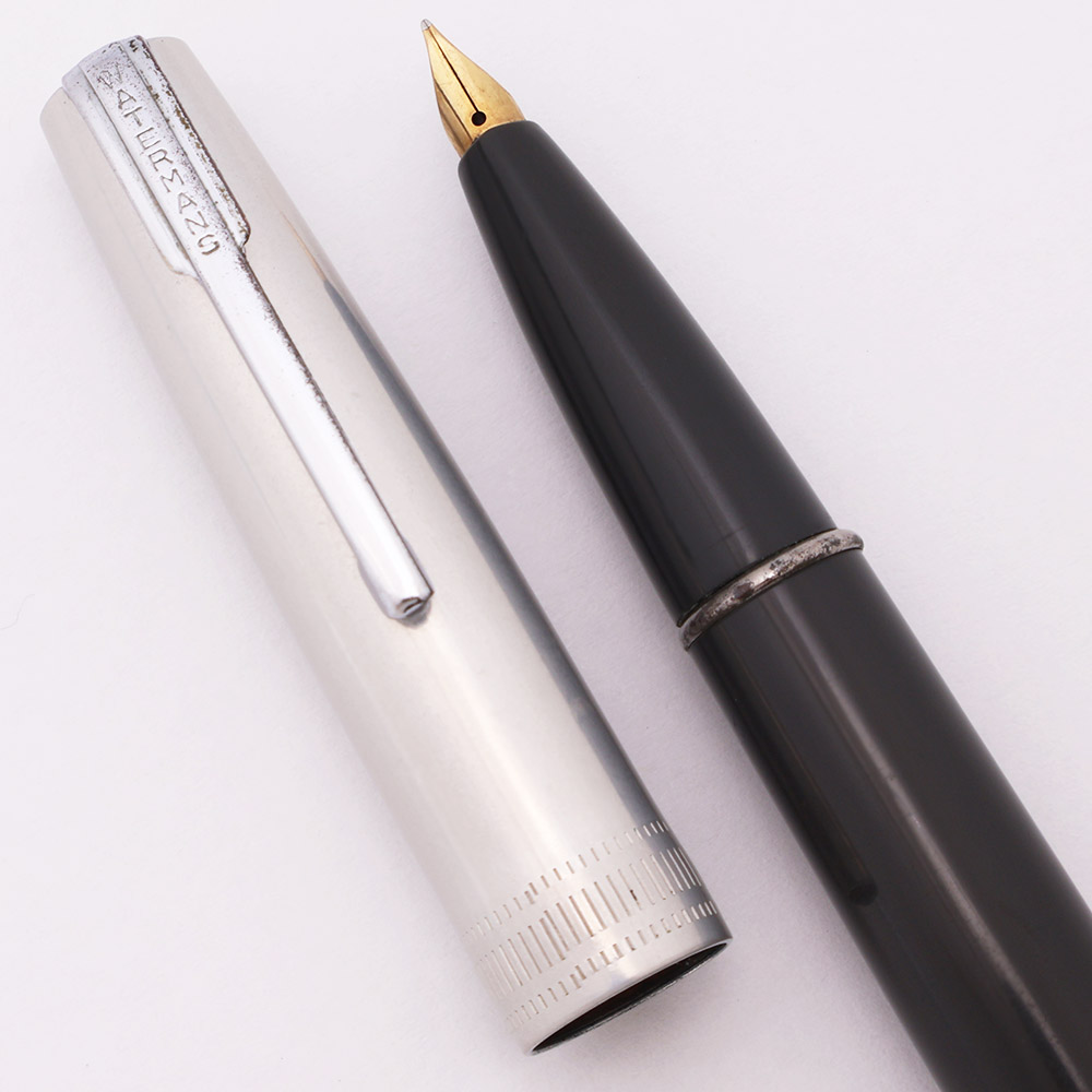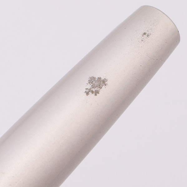 Condition Excellent condition with no cracks, chips, dents, or dings. Fountain Pen: The section has light scratching from the cap. The clutch ring has some brassing, and is doing a good job at keeping the cap secure on the pen. The lever and housing have some light scratching. The barrel has microscratching. The cap has a splotch of pitting, and we've included a detailed shot of this area in the photos. There is plating wear along the sides of the clip, as well as some on the top where it attaches to the cap. The rivet also has a splotch of pitting. Mechanical pencil: There is light scratching and handwear all over. The clip looks good, with minimal brassing or plating wear. There are a couple of spots of brassing on the cone. The imprints on both pieces are nice and clear.