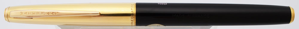 Condition New old stock condition in box with paperwork and tag. There is a "JIFmatic" sticker attached to the barrel, and the "Medium" nib width chalk mark is also present. There is microscratching on the body of the pen. The gold-plated finial at the end of the barrel has some brassing. The cap looks great, no dents or dings. Comes in original hard-sided clamshell box, with velvet-lined platform.