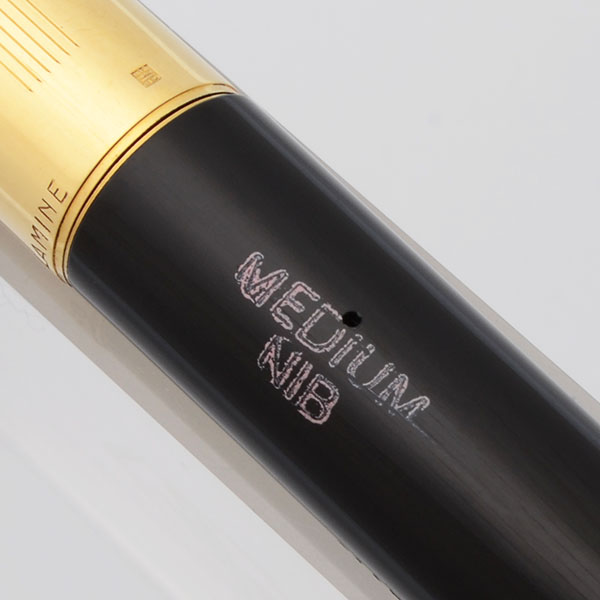 Nib MEDIUM 14k gold nib. It has moderate flex. Please see our writing sample below.